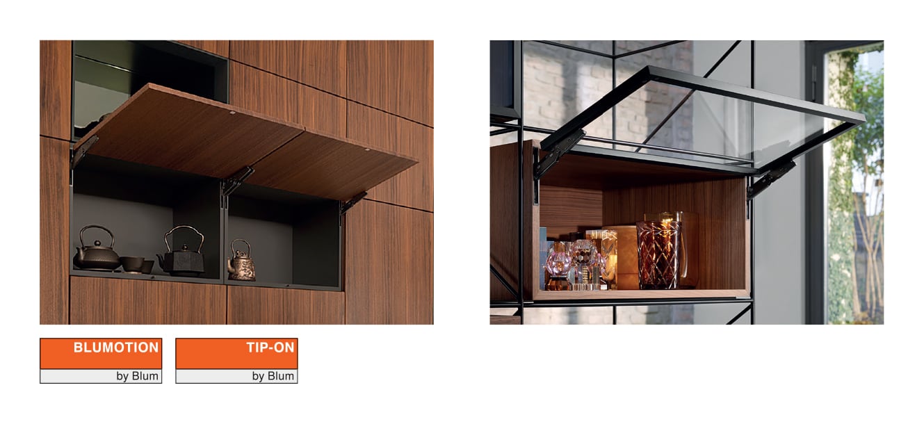 Pour les grands meubles hauts avec face en deux parties et faible encombrement vers le haut.Existe en version SERVO-DRIVE ou STANDARD.