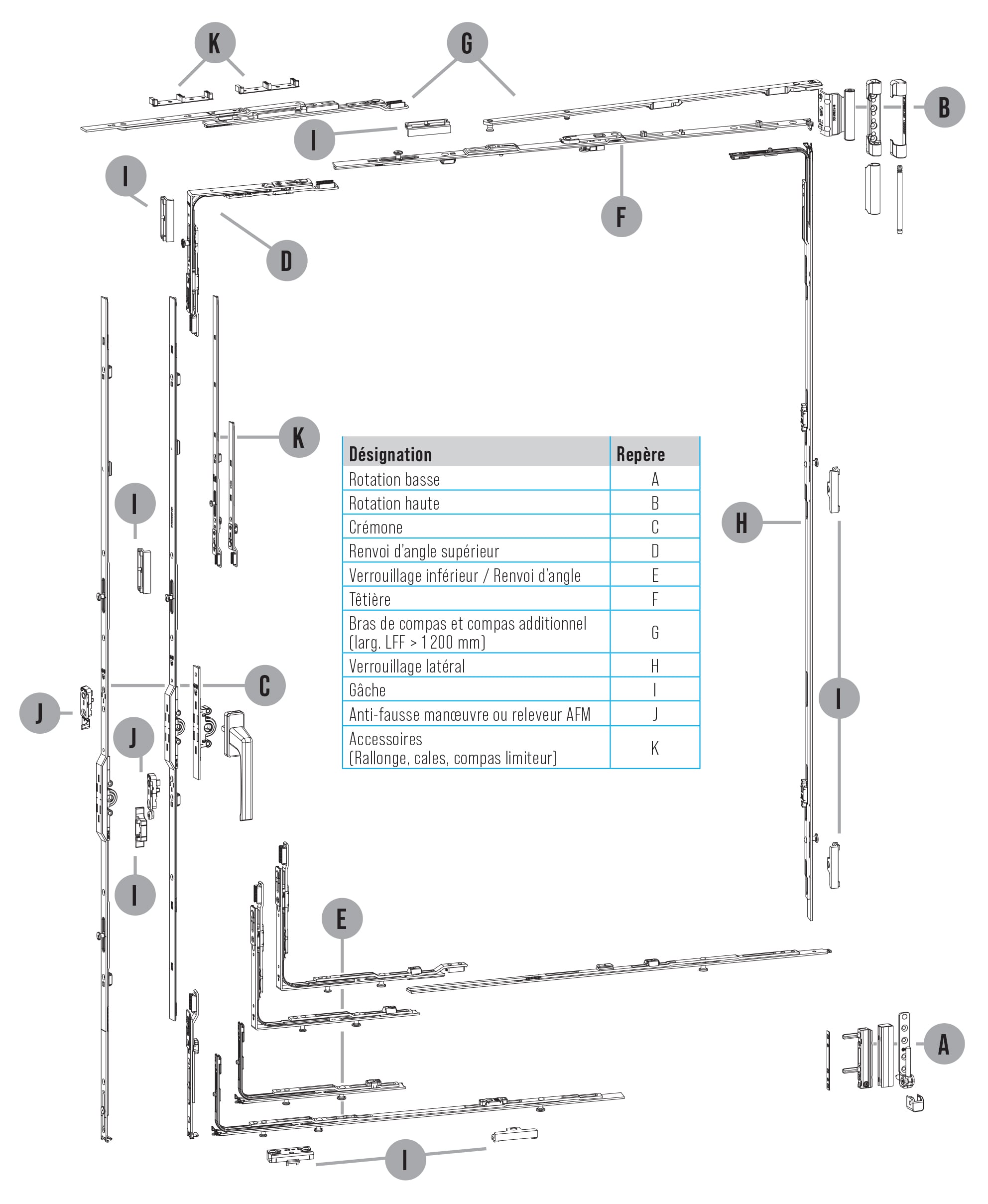 Ferrure pour oscillo-battant menuiserie bois FERCO