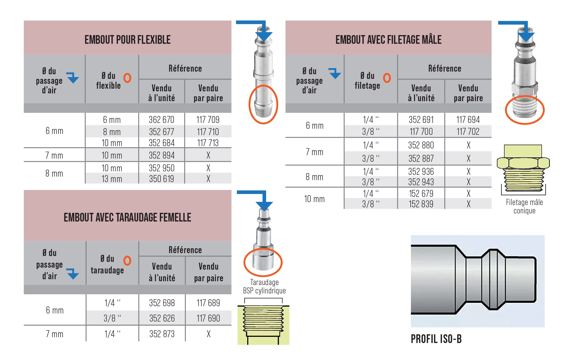 Les embouts "mâles" (Profil ISO-B)