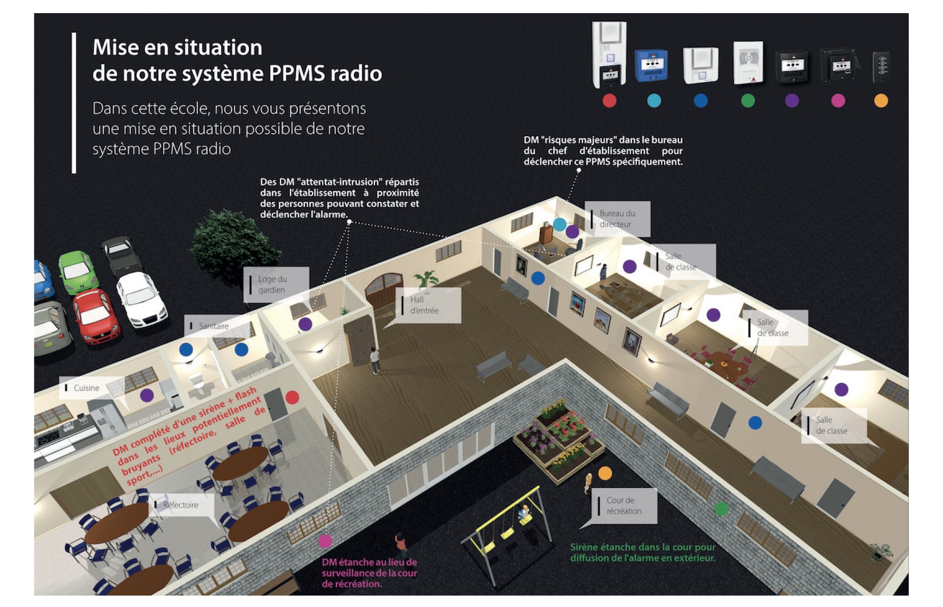 • Diffusion d’un message vocal (ex : “PPMS en cours, restez en classe”)