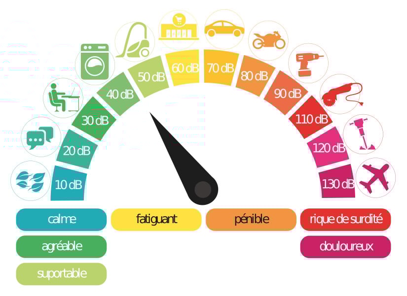 Ainsi, un protecteur auditif ayant une valeur SNR de 35 dB atténu un bruit de 100 dB à un niveau de 65 dB.