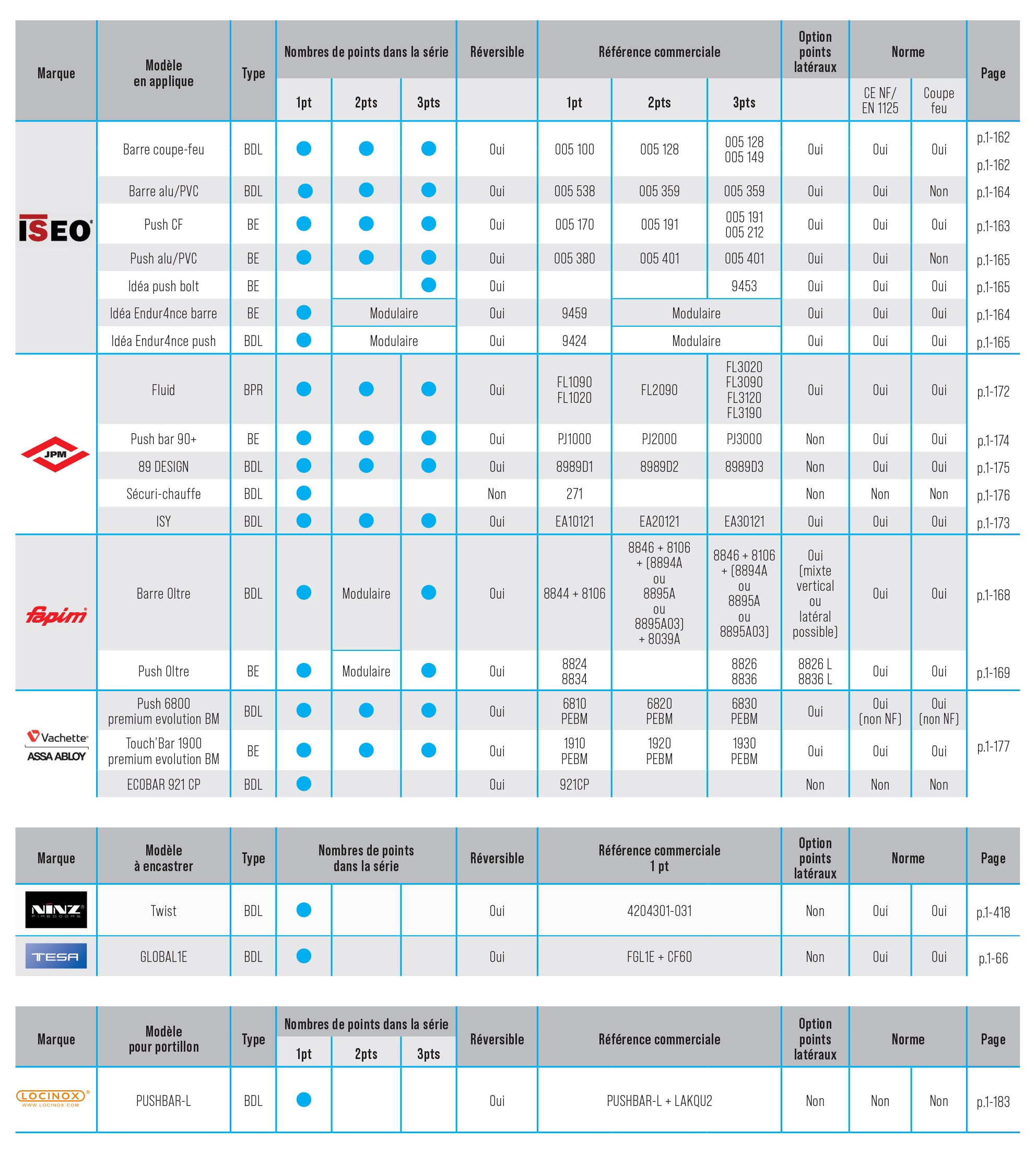 • S’assurer des normes et degrés feu de l’anti-panique en fonction du type de porte, de l’ajout d’accessoires ou d’options (type dogging).