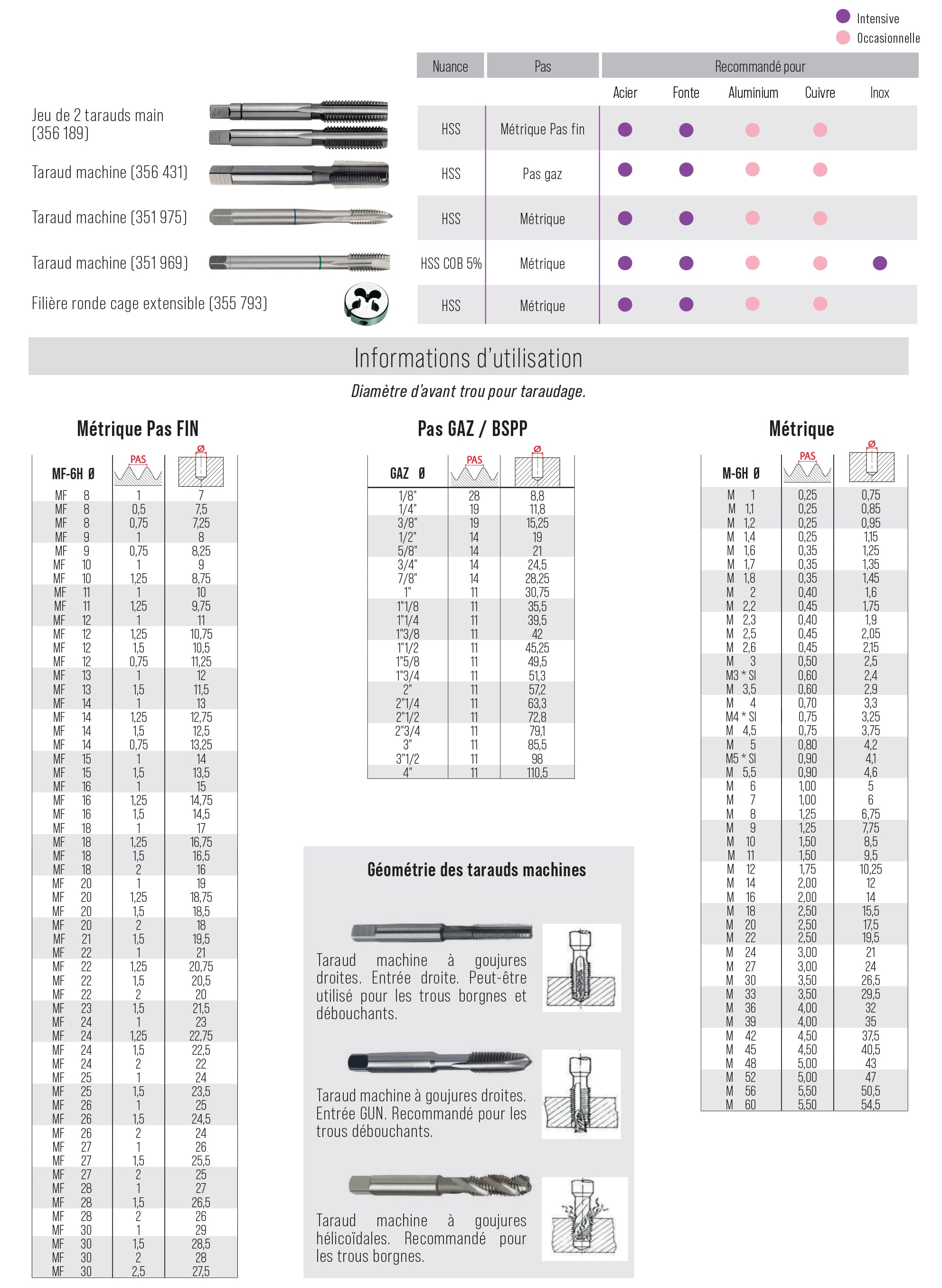 Bien choisir les tarauds et filières