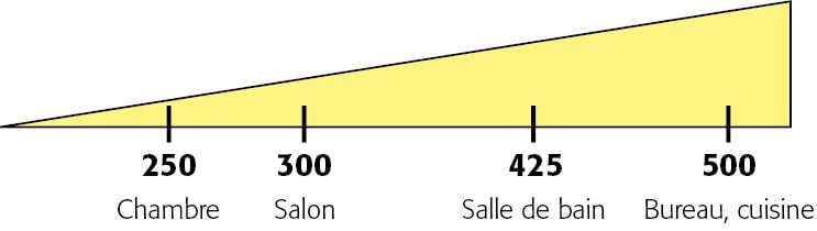 Pensez à bien adapter la puissance d'éclairage à la pièce à éclairer et à l'ambiance recherchée.