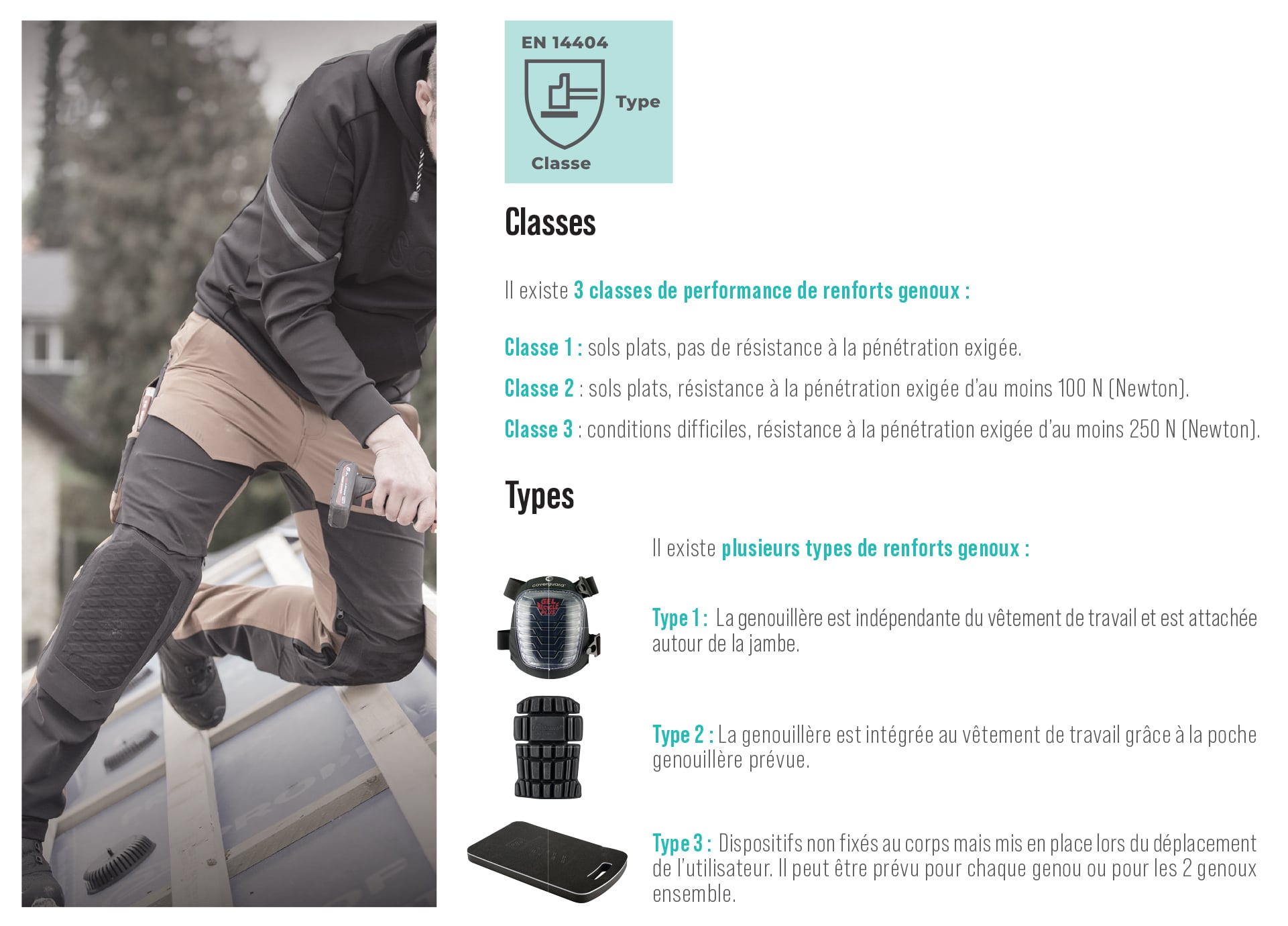 Vêtements de protection des genoux pour le travail à genouxCertaines professions imposent le travail à genoux de longue durée comme pour le carreleur, le plombier, le couvreur et bien d'autres encore.